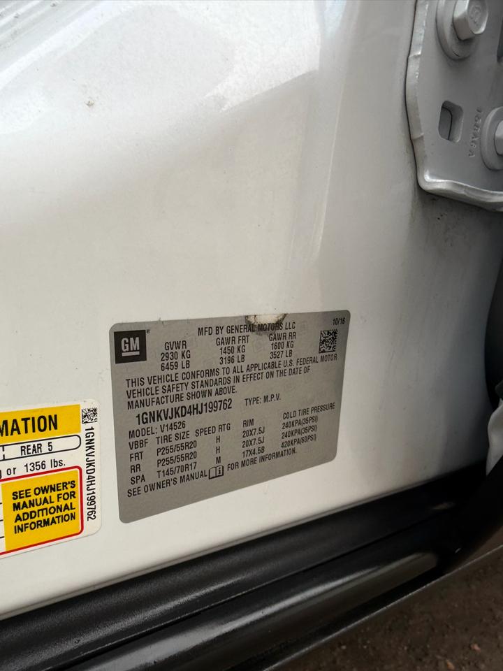 - Tires, P255/55R20 H-rated, blackwall