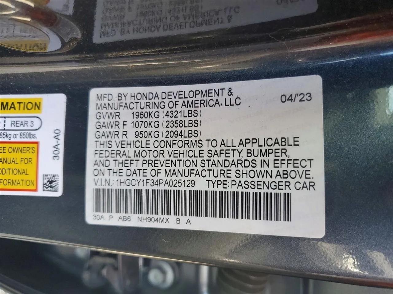 1HGCY1F34PA025129