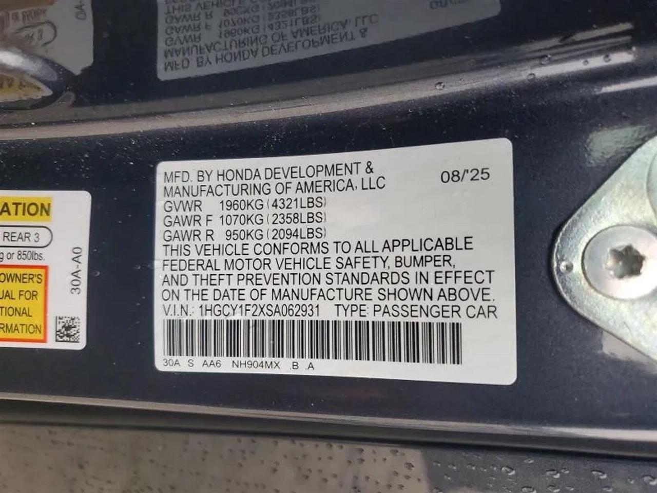 1HGCY1F2XSA062931