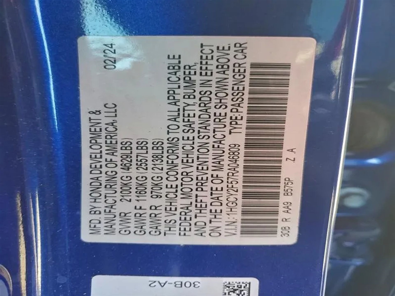 1HGCY2F57RA046809